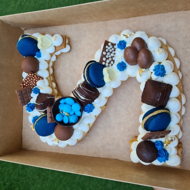 עוגת מספרים או צורה/אות מבצק פריך וקרם מסקרפונה/פטיסייר מוקצף לבחירה המחיר עבור אות/ספרה/צורה אחת