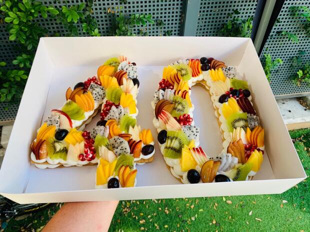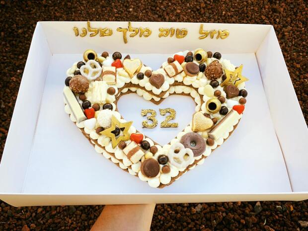 עוגה מבצק פריך שקדים ומעליה קרם מסקרפונה משובח ולקישוט או פירות העונה חתוכים או שוקולדים בכל מיני צבעים לבחירה.