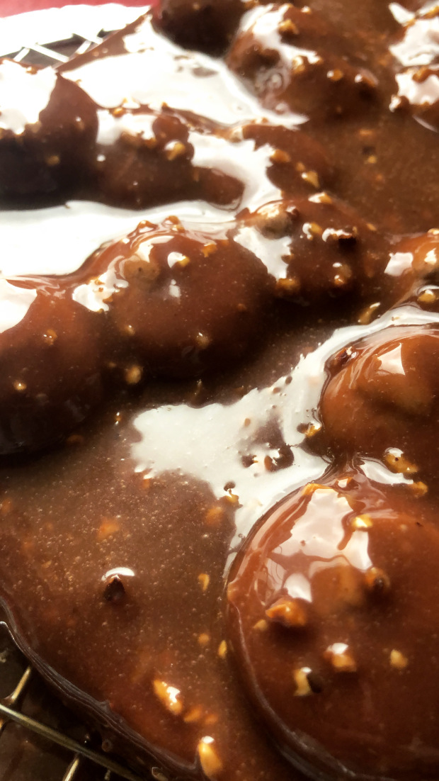 מוס שוקולד ואגוזי לוז,דקואז,פרלינה עם ריסוס שוקולד/ ציפוי שוקולד וברס