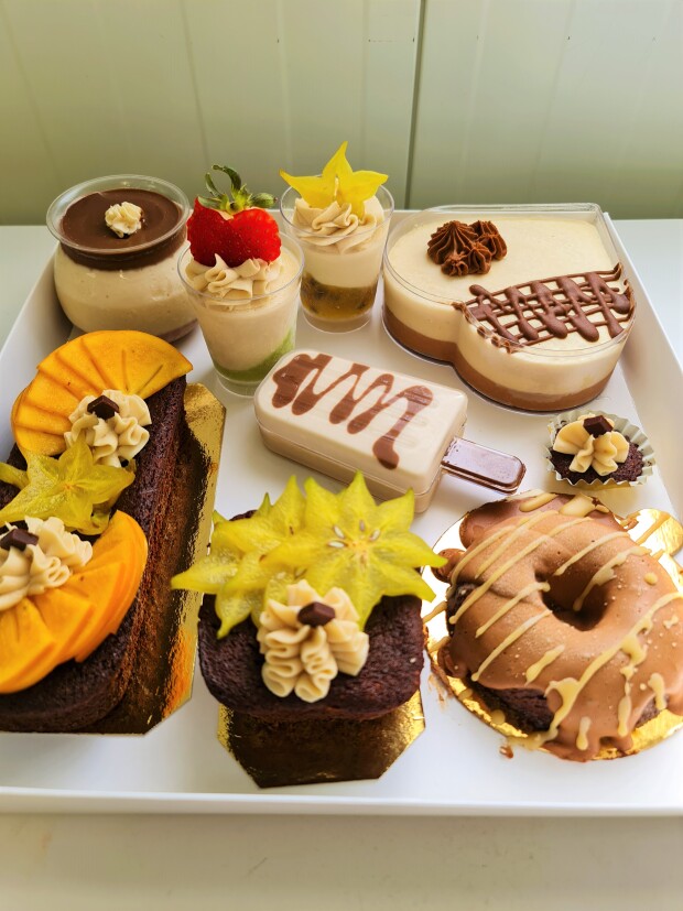 מארז קינוחים טבעונים ללא גלוטן וללא סוכר. במארז קינוחי raw על בסיס קשיו וסילאן אורגני עם עוגת שוקולד אפויה על בסיס קמח שקדים וסוכר קוקוס אורגני.