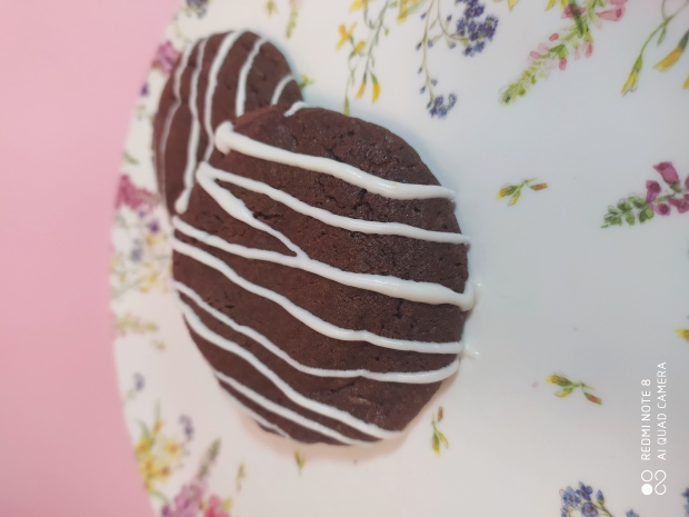 עוגיות אמסטרדם איכותיות במילוי שוקולד לבן נמס בתוספת זילוף שוקולד לבן דקיק מעל.