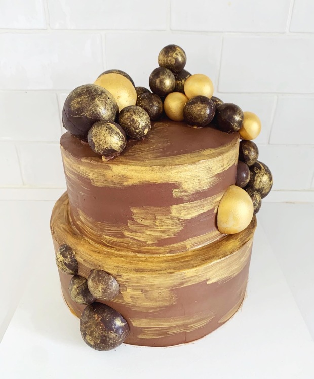עוגה דו-שכבתית מעוצבת בכדורי שוקולד