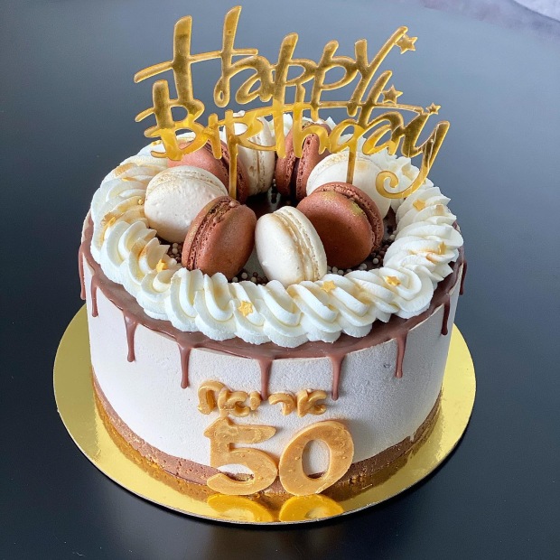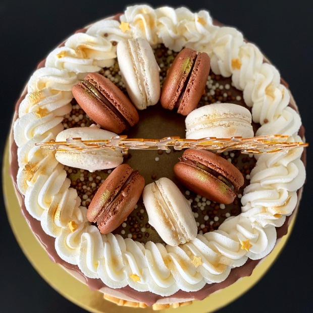 מעוצבת בציפוי גנאש, מקרונים,וקצפת