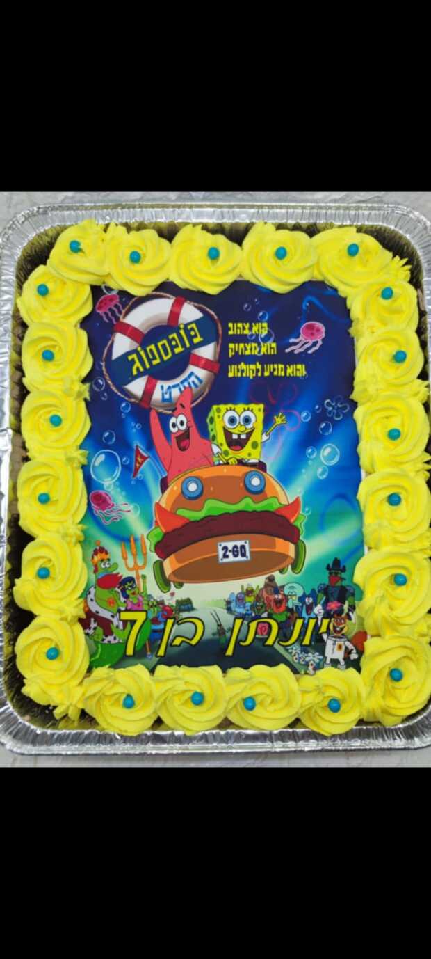 עוגת גן בינונית מעוצבת עם בובספוג וזילופים