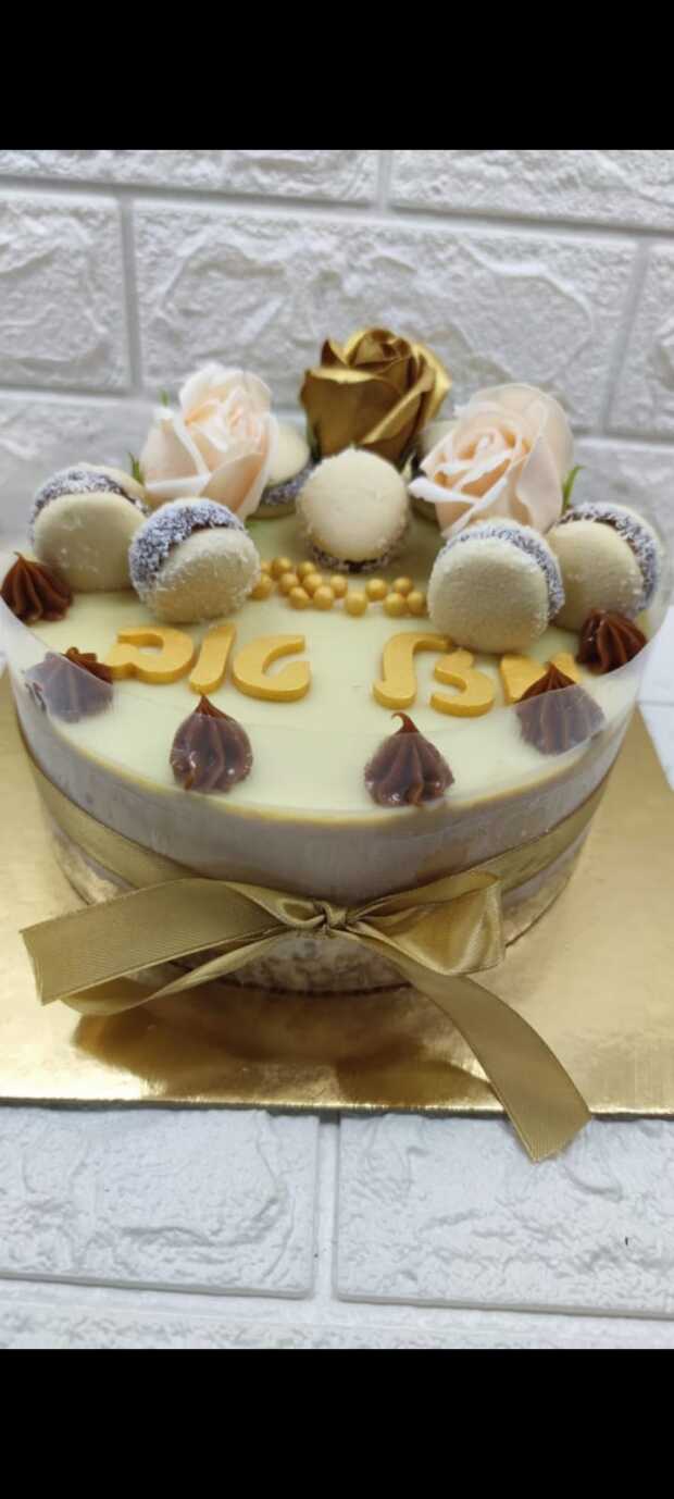 עוגת מוס ריבת חלב ואלפחורס עם קישוטי אלפחורס עבודת יד