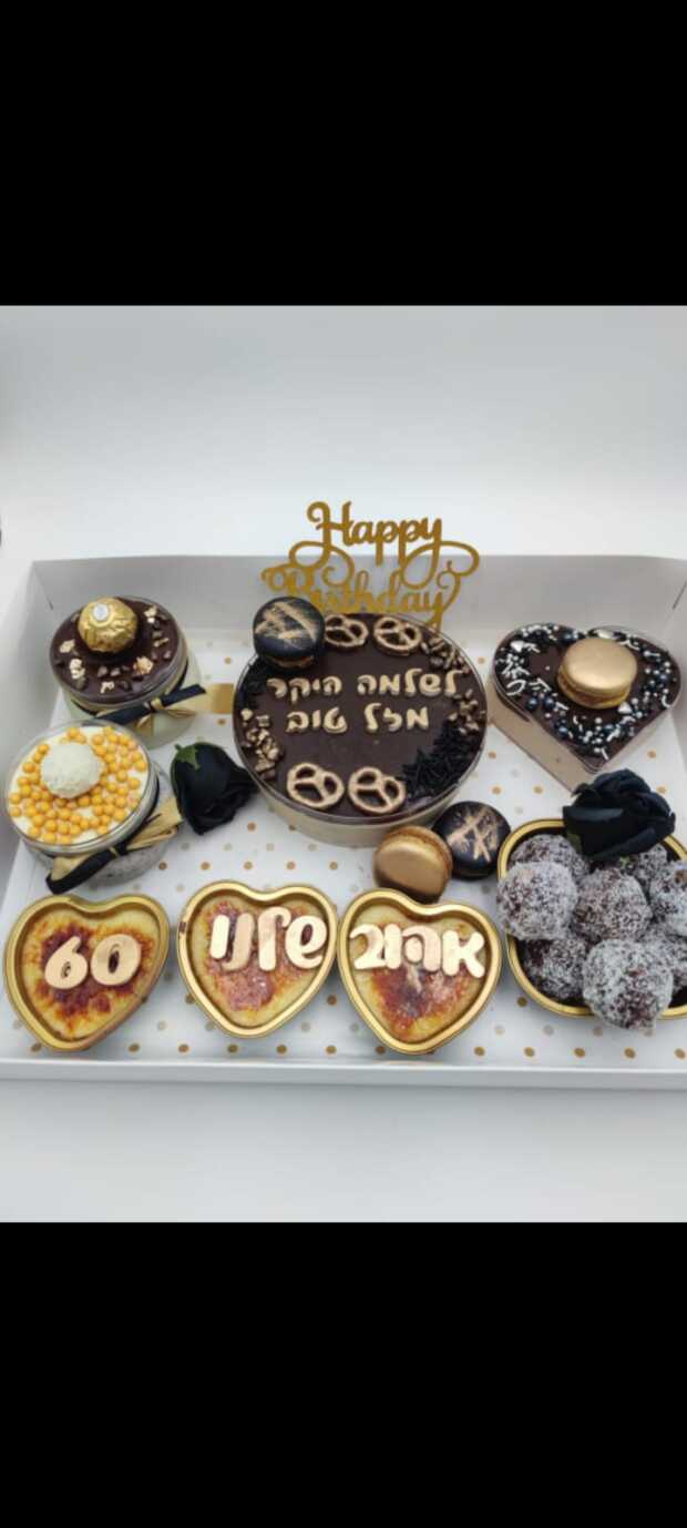 מארז קינוחים בגווני חום זהב ♥ המורכב ממוסים,קרם ברולה,מקרונים וכדורי שוקולד