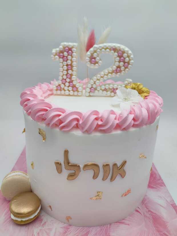 עוגת בת מצווה מושחתת בסגנון בוהו ורוד,טורט 4 שכבות עם פצפוצי קליק שוקולד וקצפת