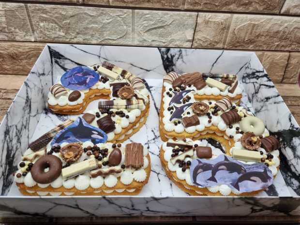 עוגת בצק פריך מספרים (25) עם שוקולדים ועיצוב אישי