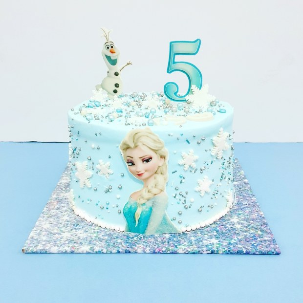 4 שכבות של עוגת שוקולד, מעל זילוף קרם וניל ודמויות אכילות