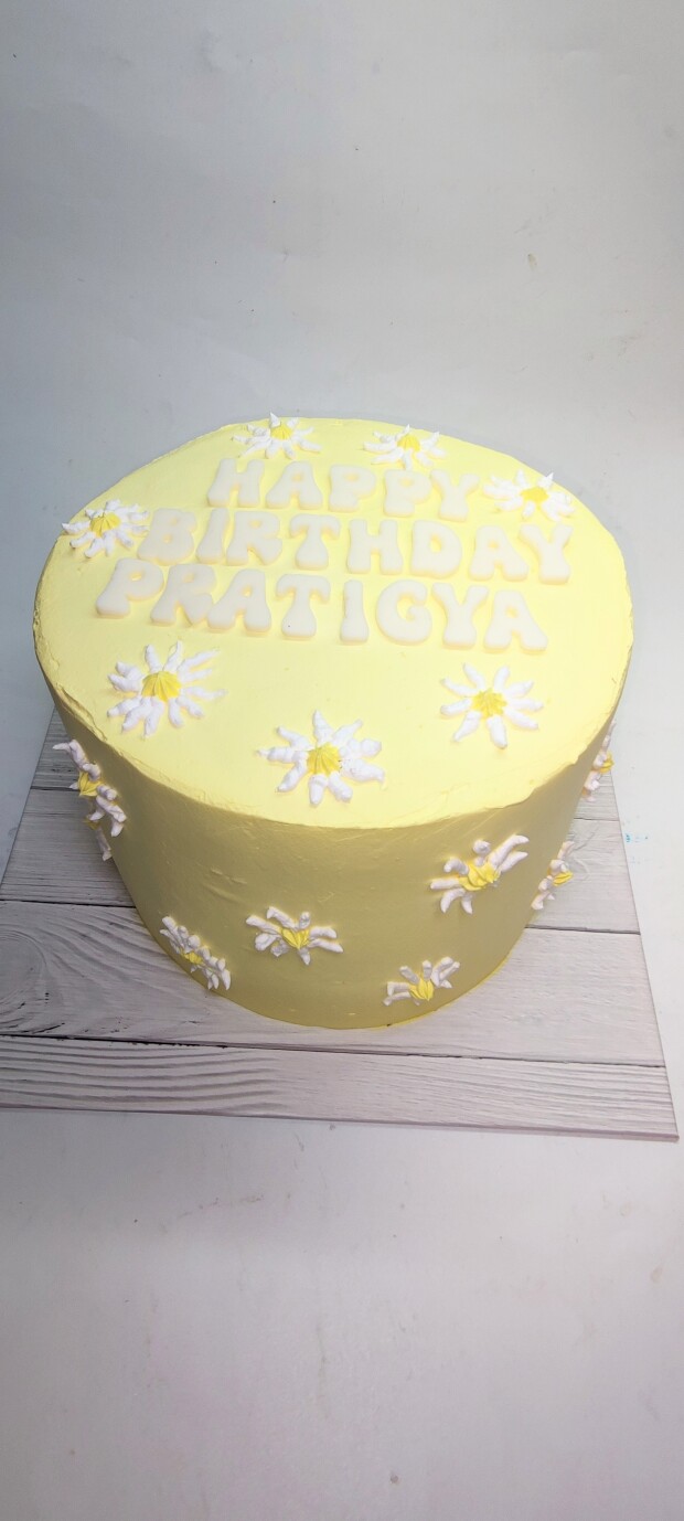 עוגה פרחונית צהובה