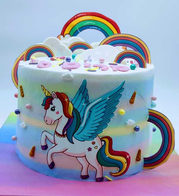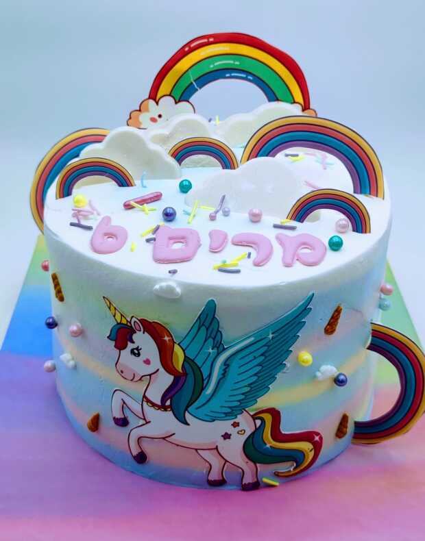עוגת חד קרן מעוצבת בצבעי הקשת