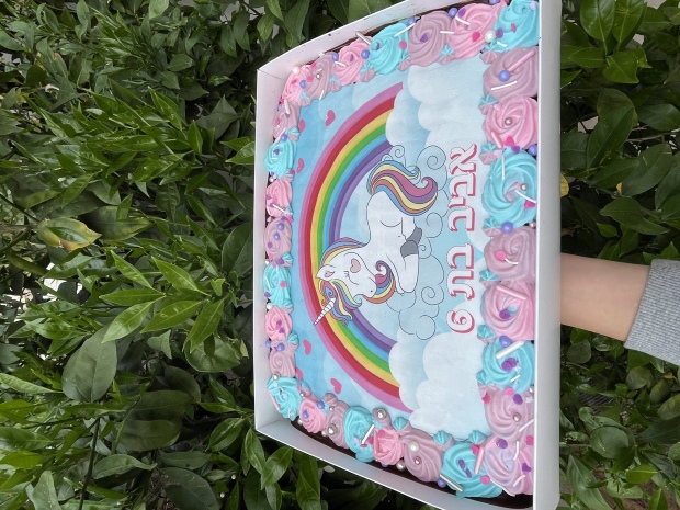 עוגת גן בקונספט חד קרן עם זילופים צבעוניים לאביב הנסיכה🦄