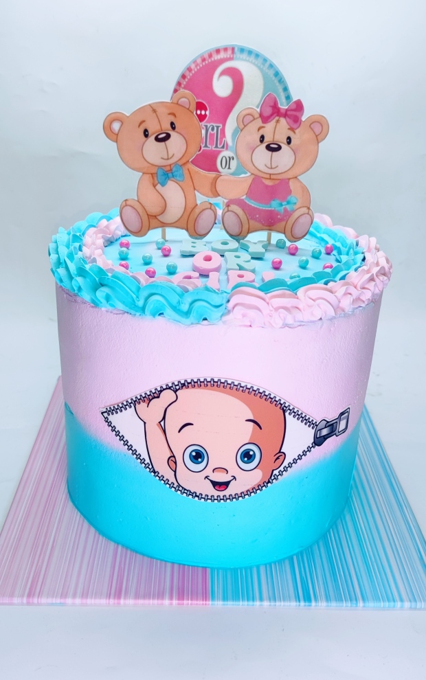 עוגת גילוי מין העובר תכלת ורוד בייבי