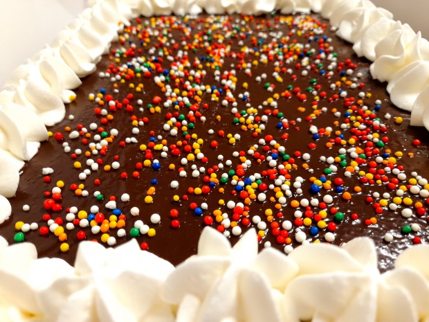 עוגת שוקולד רכה ועסיסית בציפוי גאנש וקישוטי קצפת