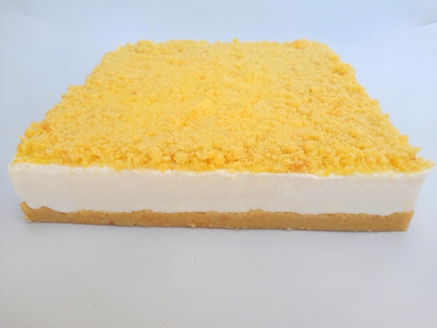 תחתית בצק אפוי , שכבת מוס גבינה עשיר ומפנק ומעל שכבת שטרויזל