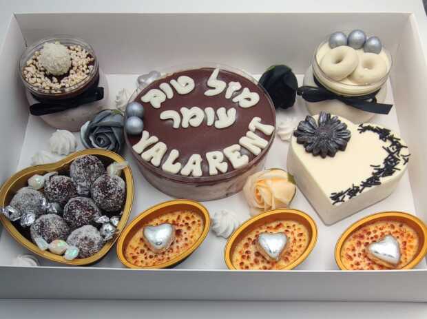 מארז המכיל מוס ענק, 3 מוסים בינוניים, כדורי שוקולד וקרם ברולה