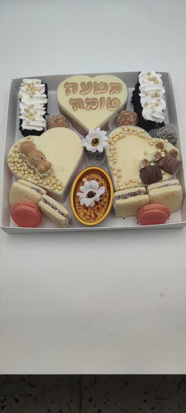 מארז מושחת המכיל מוסים בטעמים משתנים, קרם ברולה, חיתוכיות שוקולד עם קצפות ועוד ♥