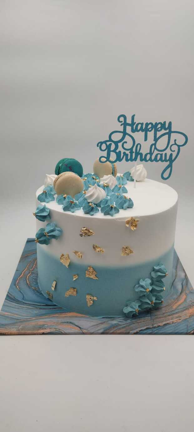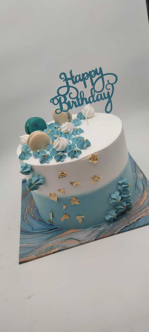 עוגת יום הולדת תכלת זהב לבן קלאסית