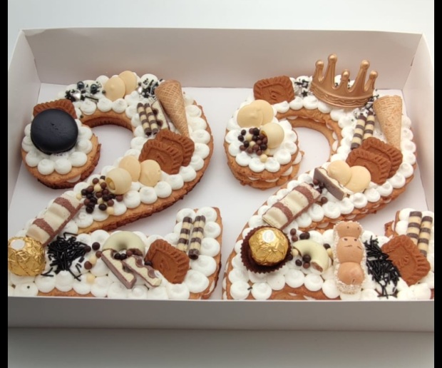 עוגת בצק פריך מספרים מושחת וחמאתי עם קצפת טעימה ושוקולדים מושלמים,