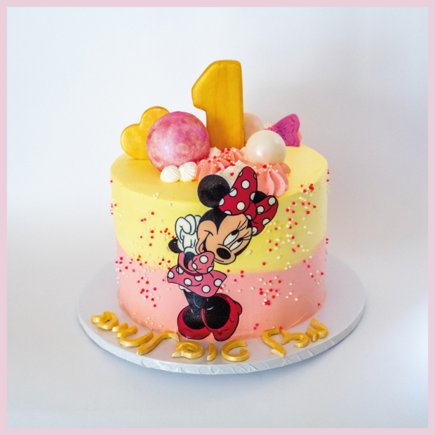 טורט (וניל/ שוקולד) ארבע שכבות מועשר בסירופ וניל, ממולא קרם וניל וגנאש לבחירה. עם הדפס אכיל קישוטי בצק סוכר וצימקאו. ניתן להשיג בחלבי ופרווה, כל חומרי הגלם כשרים.