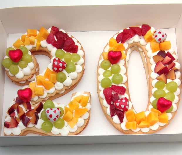 עוגת מספרים בצק פריך ספרות 20 פירות