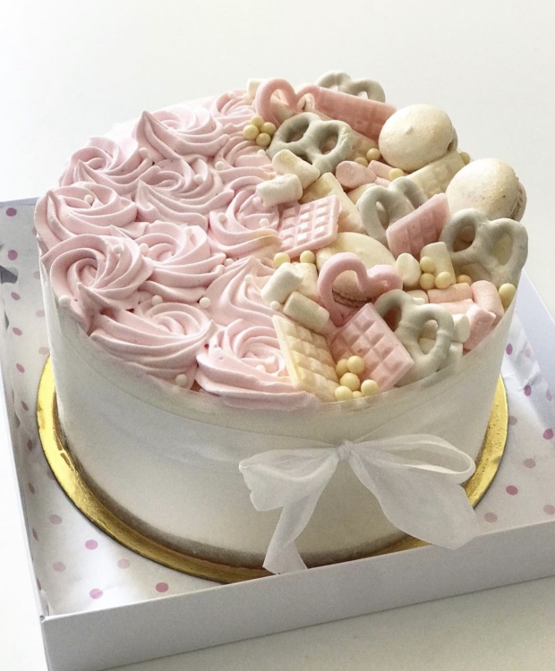 וחצי בקישוט מקרונים, שוקולדים ואלמנטים ורודים