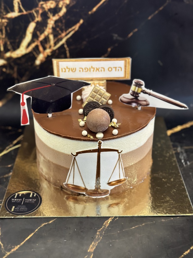 עוגת מוס טריקולוד בעיצוב לסיום תואר במשפטים