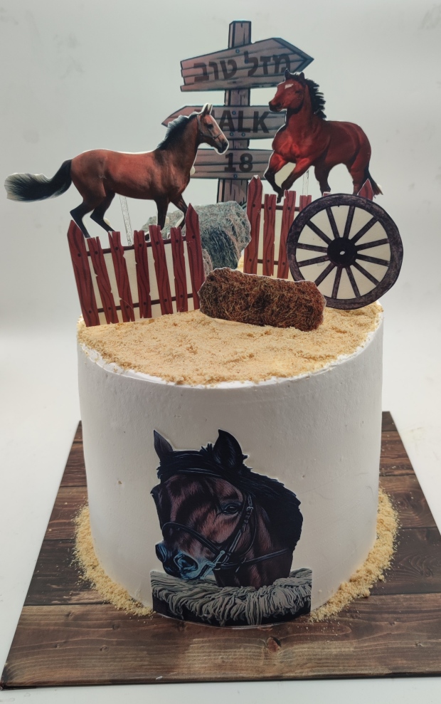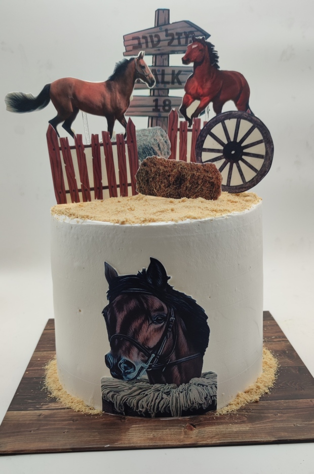 עוגת יום הולדת 4 שכבות עסיסיות ביותר בעיצוב סוסים