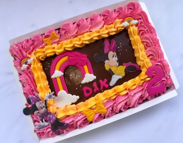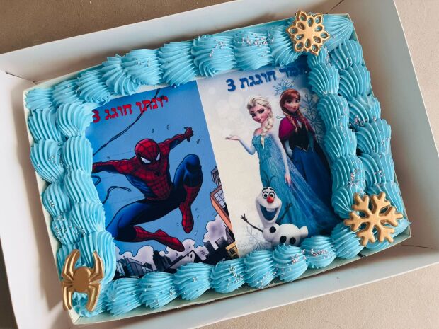 עוגת גן קטנה גודל a4 מספיקה ל 20 אנשים , העוגה עשויה מעוגת שוקולד/וניל , שכבת גנאש שוקולד/קצפת (חלבי/פרווה) , דף סוכר בעיצוב אישי , קרם התואם לעיצוב ואלמנטים התואמים לעיצוב העוגה