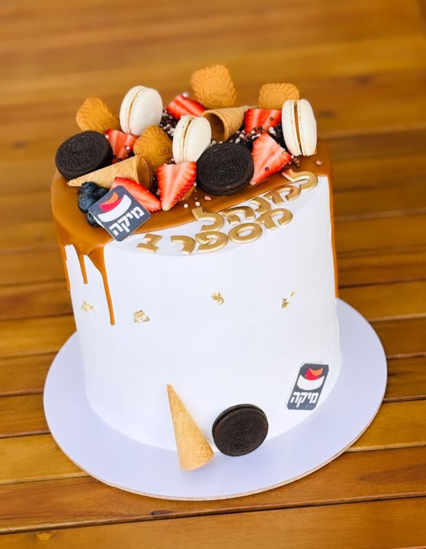 עוגה קוטר 20 3 שכבות עוגה ו2 שכבות קרם , העוגה עטופה בקצפת