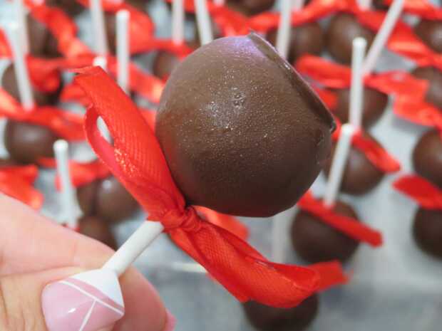כדור שוקולד שוקולדי במיוחד מצופה שוקולד על מקל