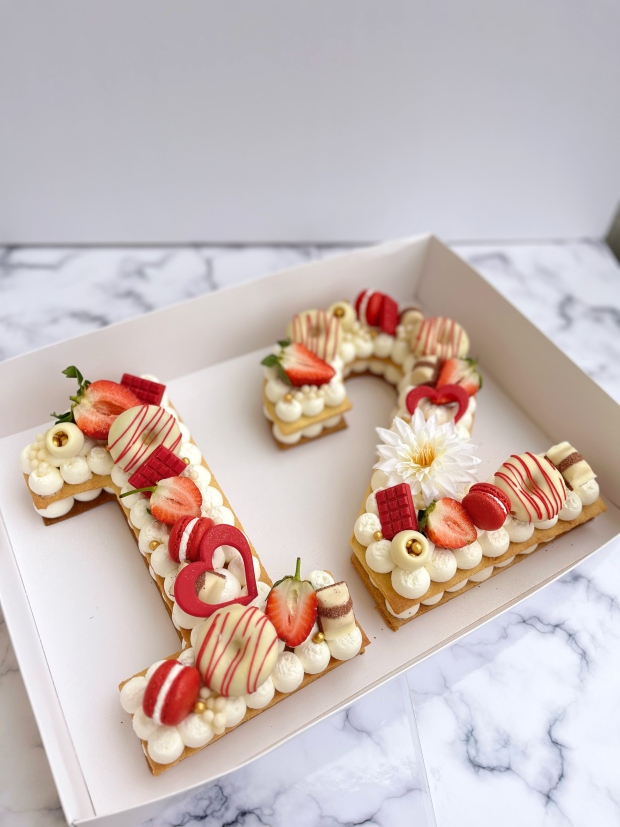 שכבות של בצק פריך שקדים, קרם מסקרפונה מפנק וקישוטים בהתאמה אישית