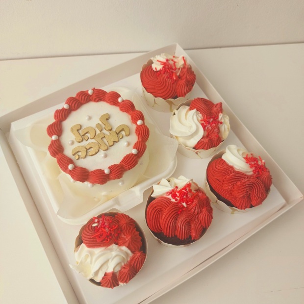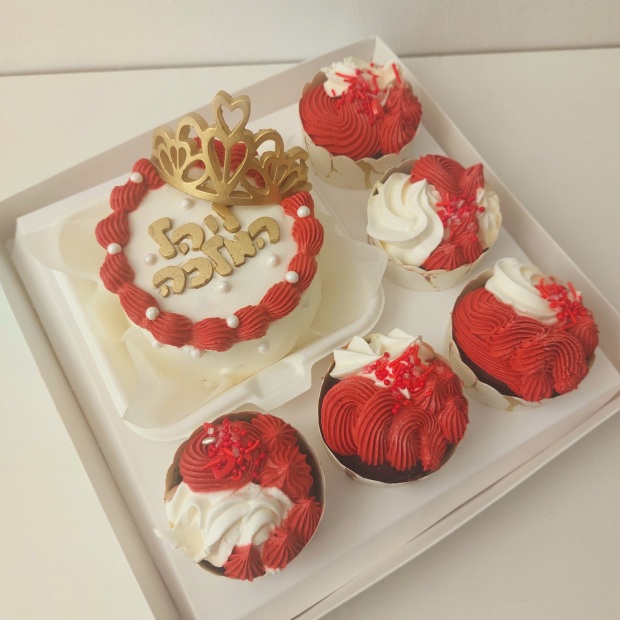 מארז בנטו מרשים וטעים עם 5 קאפקייקס, ניתן לבחור את הצבע הכיתוב, ניתן כחלבי או כפרווה, הקאפקייקס מלאים בנוטלה או פירות יער לפי בחירה
