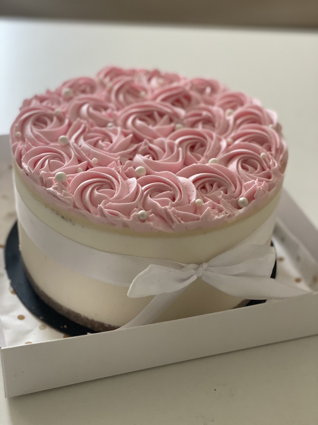 עוגת יומולדת שוקולד לבן וזילוף שושנים