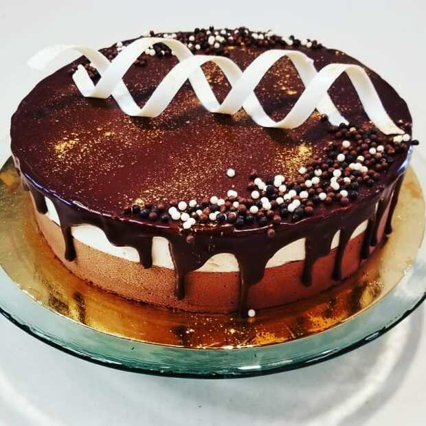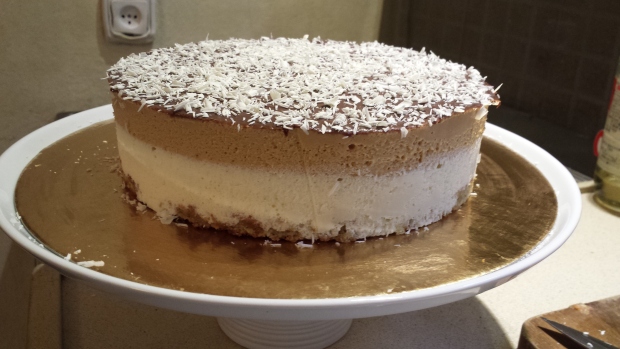 שכבות של עוגת מוס בשני טעמי שוקולד