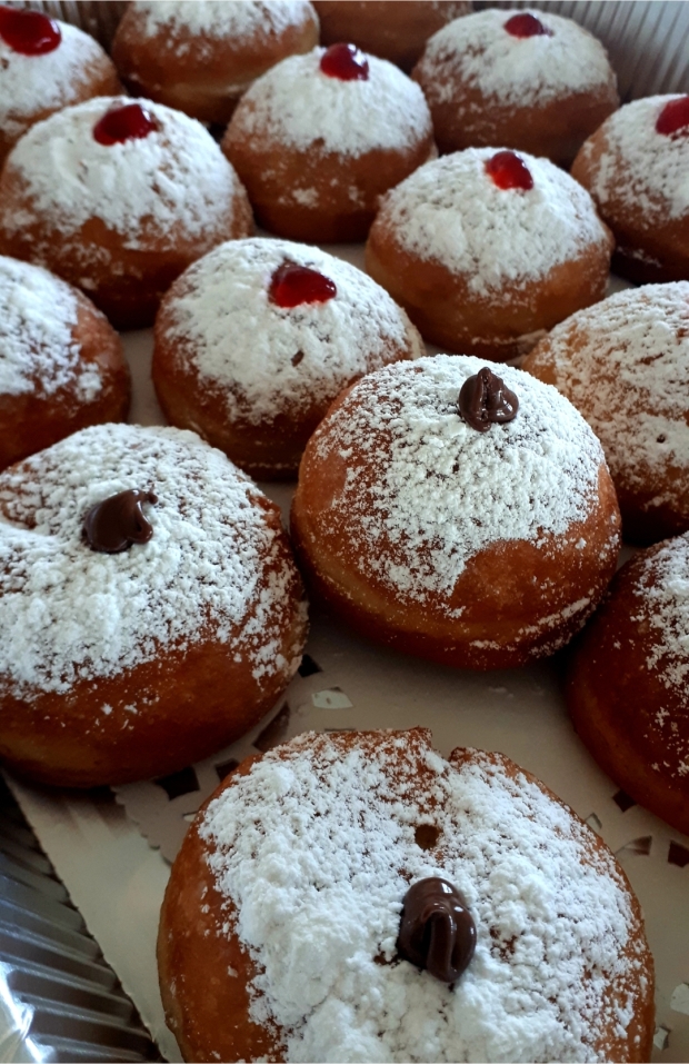 * סופגניה רגילה ב-5 שח ליחידה, ללא גלוטן ב- 12 שח ליחידה * סופגניה מעוצבת בטעמים שוקולד,חלווה,ריבת חלב ב-9 שח ליחידה