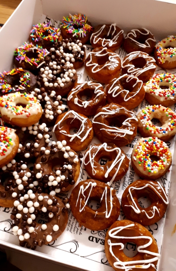 מיני דונאטס עם ציפוי לבחירה דונאטס שמרים גדול עם ציפוי לבחירה
