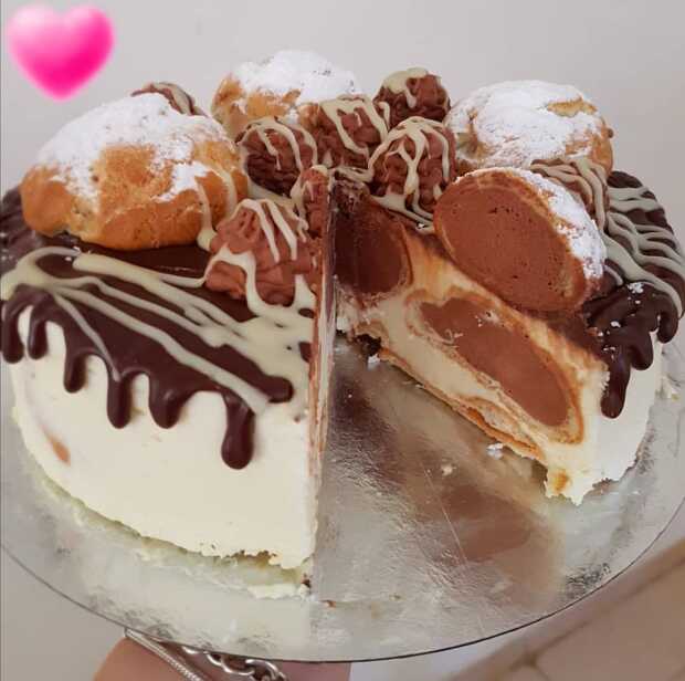 מוס שוקולד לבן ממולא בפחזנית במילוי שוקולד מריר