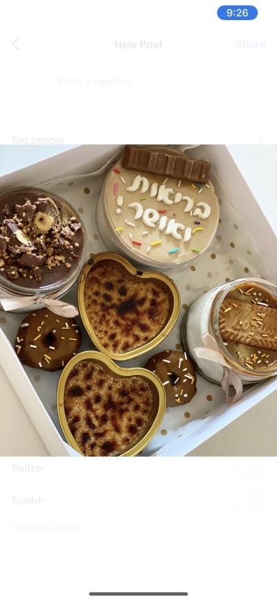 בקונדיטוריה הביתית שלי תוכלו להזמין עוגות מעוצבות, מארזים מתוקים, קינוחי כוסות, עוגות יום הולדת, מארזים לאירוח,