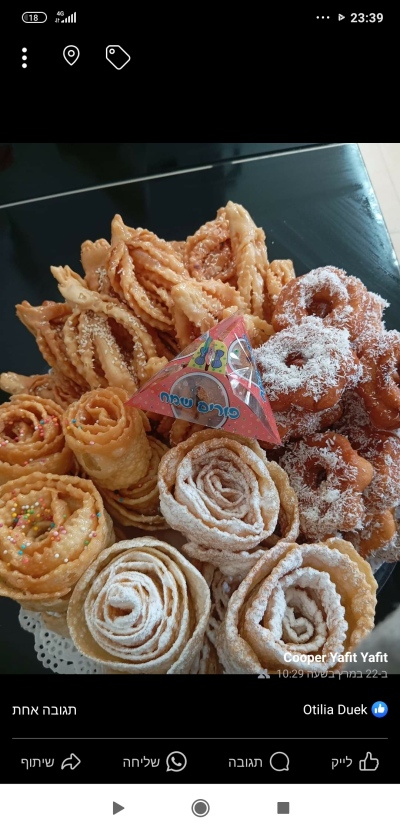 הי אני יפית אמא ל3 בנות עובדת שכירה אבל האפיה זורמת בי מגיל צעיר תמיד אפיתי קינוחים שכולם משבחים ,אני אוהבת שאנשים אוכלים את העוגות והעוגיות שלי וכל ביס משאיר טעם של עוד ,אז כמו שהבנת אני מכינה עוגות ועוגות ביתיות ובנוסף תחום המומחיות שלי הן עוגיות מרוקאיות אני ישמח שתבין חלק מהלקוחות המרוצים שלי ⁦❤️⁩