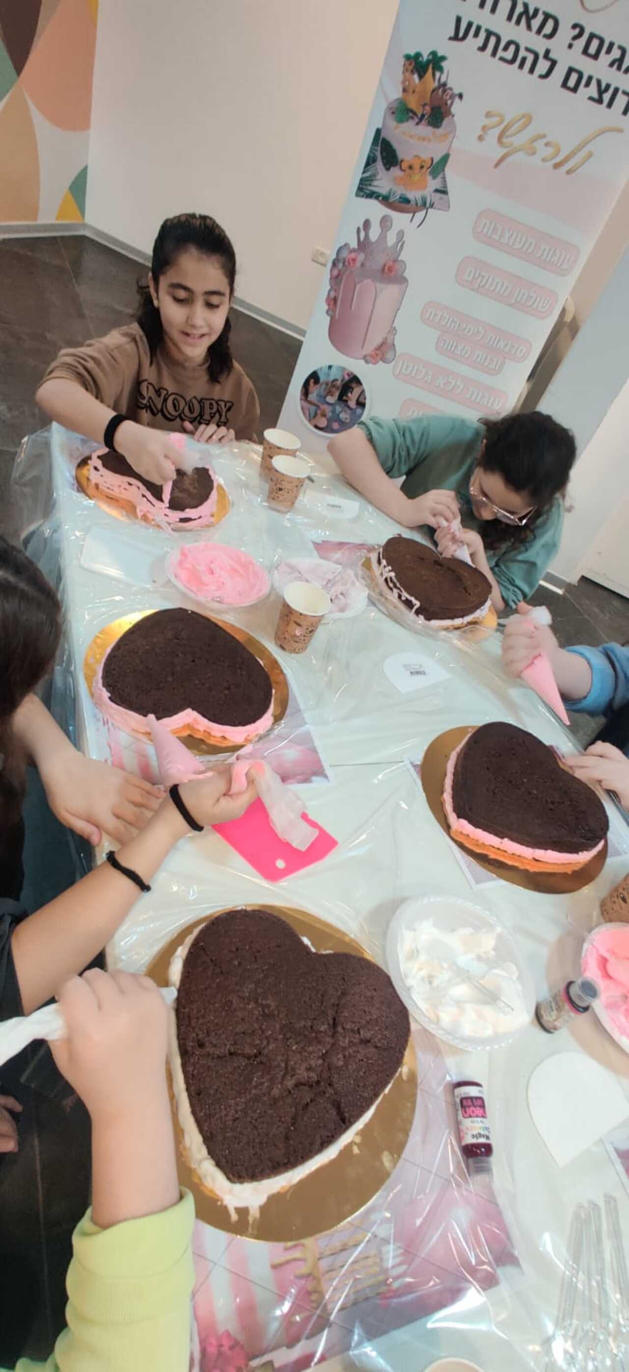 נלמד איך לעטוף עוגה, נזלף צורות עם צנטרים, נקשט את העוגה בסוכריות ואלמנטים ולבסוף כל אחד יצא עם תוצר מתוק