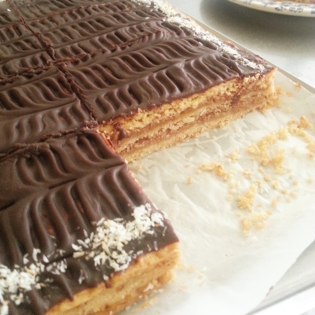 עוגת ז'רבו הונגרית מסורתית- (שכבות בצק שמרים פריך ביניהן ריבת משמש, אגוזים ולסיום עטיפת גנאש שוקולד מריר)